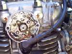 The Yamaha XS1100 is the only bike engine I know of that has a vacuum spark advance. Why have vacuum advance ? Under part throttle, air intake into the intake manifold is restricted, so a vacuum develops in the manifold. Because of this vacuum less air/fuel mixture is drawn into the cylinder. This, in effect, lowers the engines compression and slows the burn rate of the fuel mix. To get the full power out of the engine under these conditions requires more Ignition advance. The Vacuum advance gives you this advance when there is vacuum in the intake manifold. Most car engines have a vacuum advance, but it just didn't catch on for motorcycles.